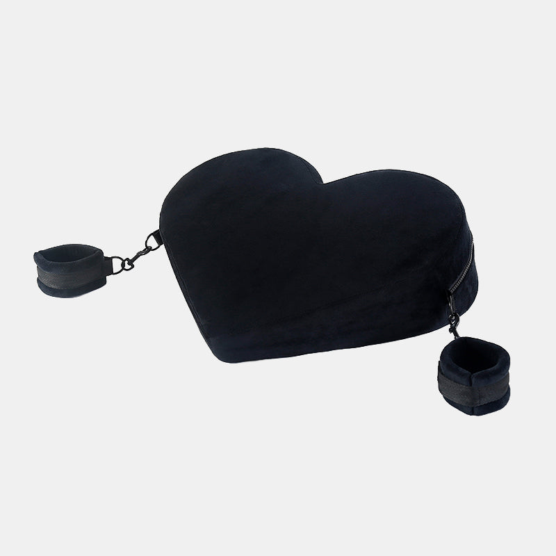 Let your bedroom become a stage for comfort, control, and creativity. The Naughty Pillow is designed to elevate your play, literally. Its heart-shaped contour provides ergonomic support to lift the hips, arch the back, or prop the body at just the right angle for deeper access and enhanced stimulation. Attached cuffs on both sides add a playful twist, bringing restraint into the equation while keeping the body comfortably aligned. From sensual foreplay to adventurous positions, this wedge pillow offers support, stability, and seductive control all in one irresistible shape.